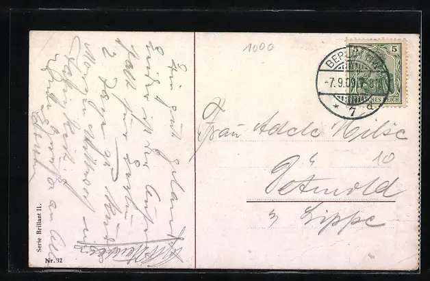 gelaufen 1909, Eckknick re. oben, guter Zustand