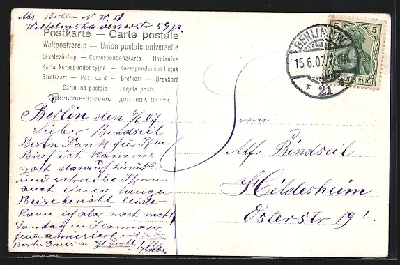 alte Ansichtskarte, gelaufen 1907, guter Zustand