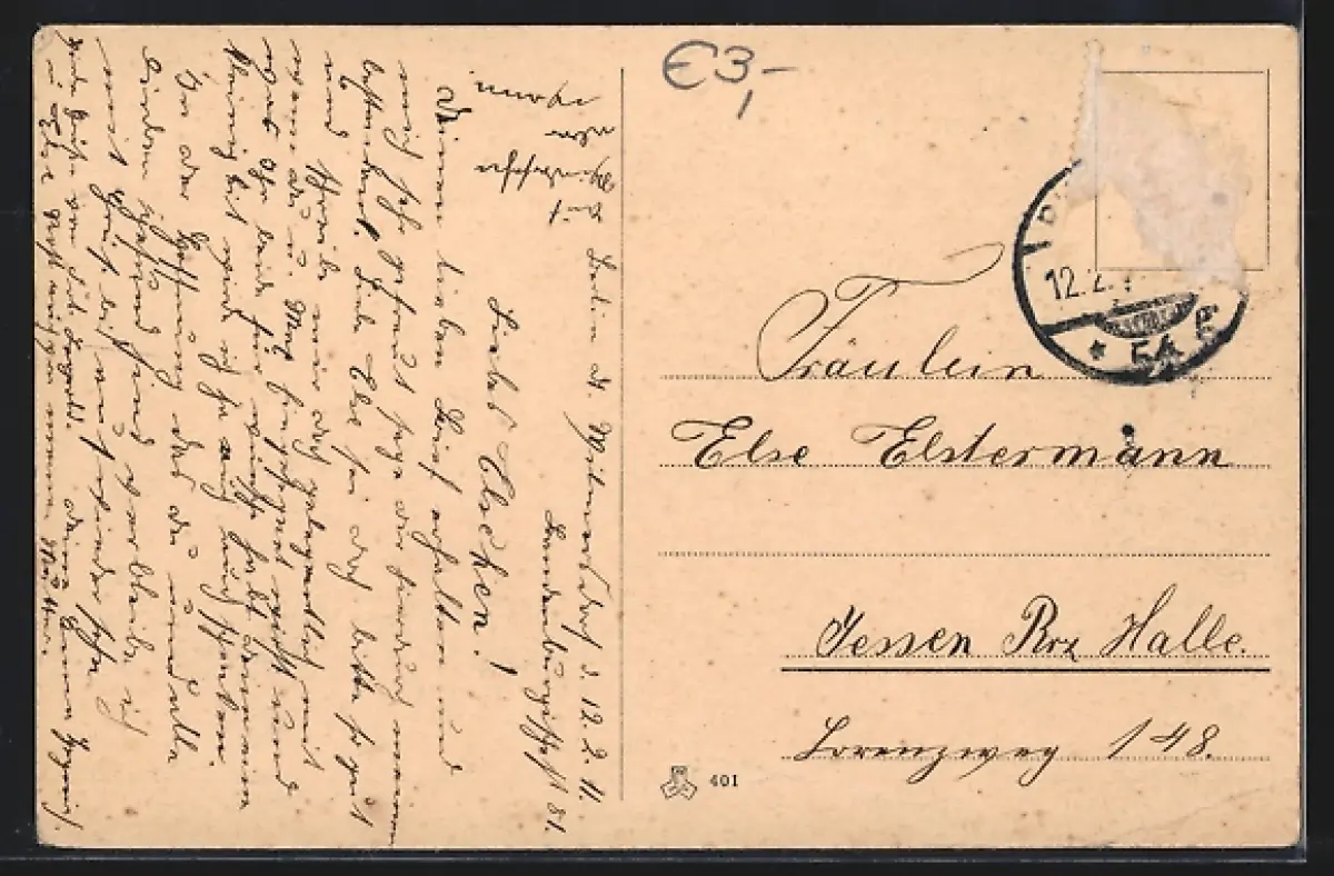 alte Ansichtskarte, gelaufen 1911, Briefmarke entfernt, guter Zustand