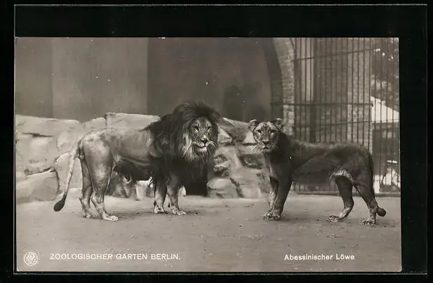AK Berlin, Zoologischer Garten, Abessinische Löwen