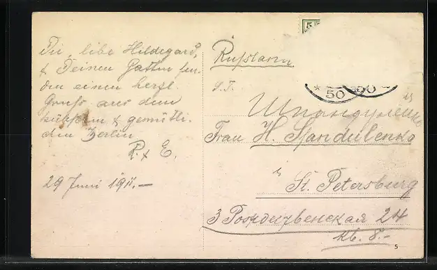 alte Ansichtskarte, gelaufen 1911, Briefmarke entfernt, rückseitig Oberflächenschaden, Stempelspur, guter Zustand