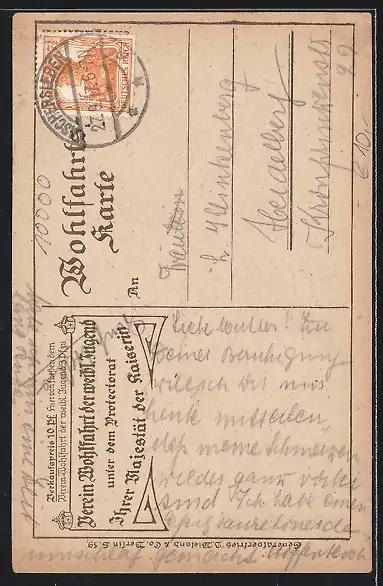 gelaufen 1917, Eckknicke re. oben und li. unten, guter Zustand