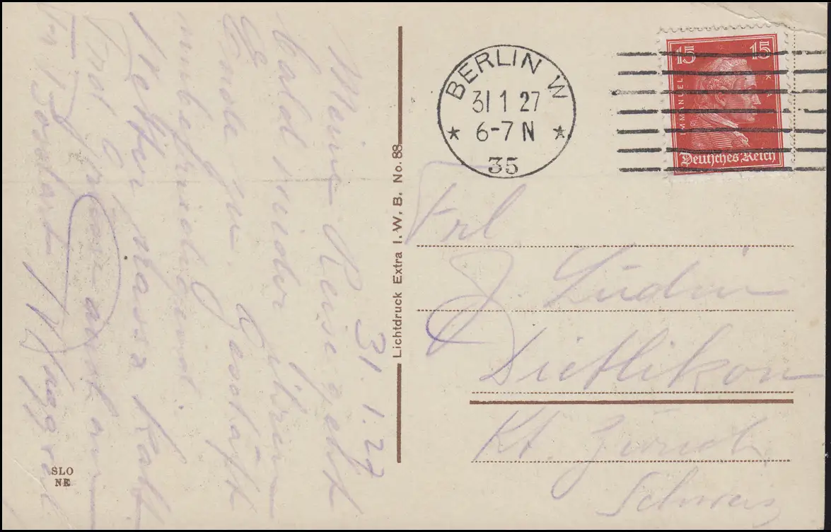 AK Berlin - mit Dom und Friedrichsbrücke, BERLIN 31.1.27 nach Dietlikon