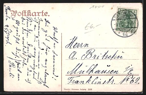 alte Ansichtskarte, gelaufen 1908, guter Zustand