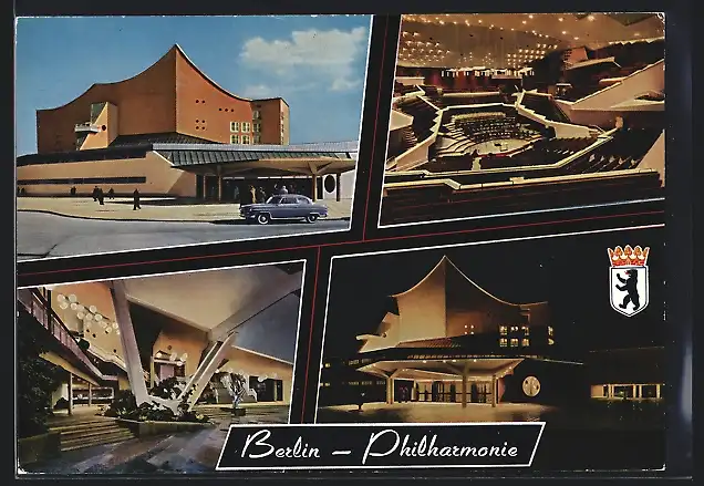 AK Berlin, vier Ansichten der Philharmonie, Berliner Wappen