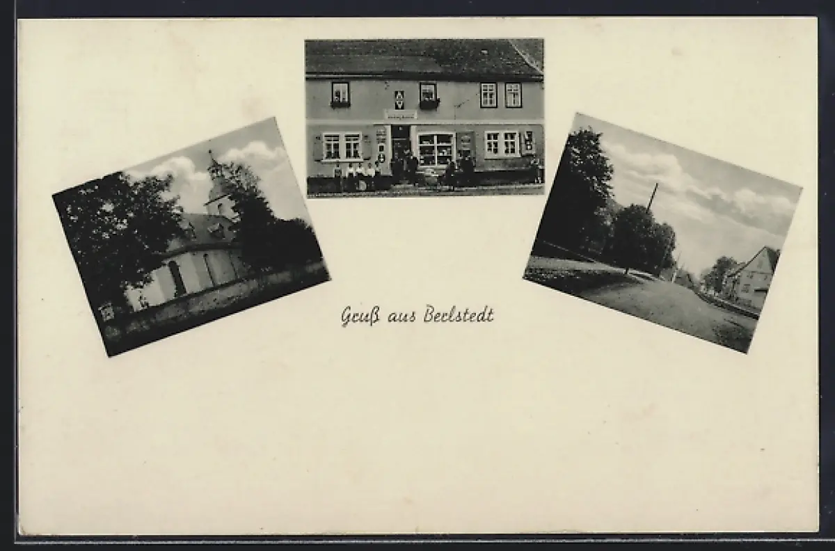 AK Berlstedt, Geschäft, Kirche, Strassenpartie
