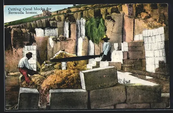 AK Bermuda, Cutting Coral blocks for Bermuda homes