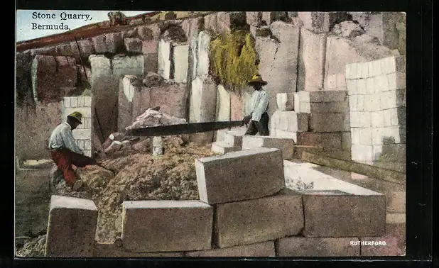 AK Bermuda, Stone Quarry, zwei Bergleute im Steinbruch