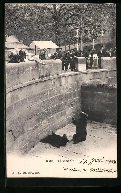 AK Bern, Besucher füttern Bären im Bärengraben