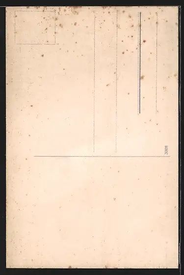 Personenbezogene Daten auf der Rückseite der Karte wurden durch blauen Textmarker unkenntlich gemacht. Die blauen Stellen sind auf die Vorderseite durchgeweicht und wirken sich negativ auf das Postkartenfoto aus