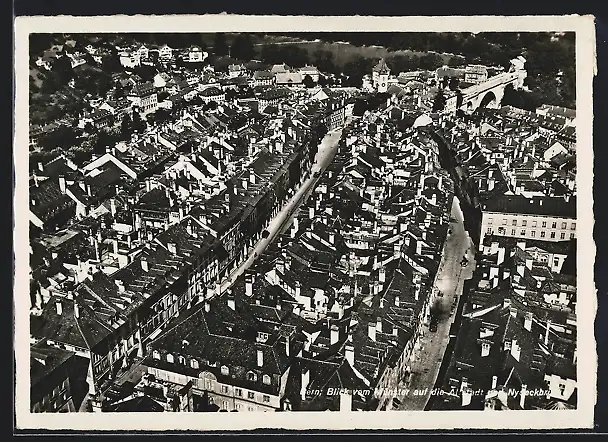 AK Bern, Blick vom Münster auf die Altstadt und Nydeckbrücke