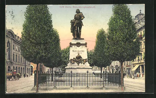 AK Bern, Bubenbergdenkmal in sommerlicher Stadteinrahmung
