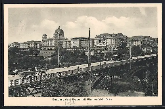 AK Bern, Bundespalast, Strassenbahn auf der Kirchenfeldbrücke