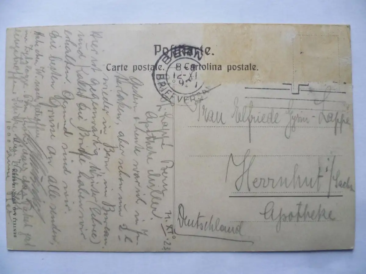 Bentell AG Bumpliz-Bern. Gelaufen 1923, Marke entfernt. Gut erhalten.