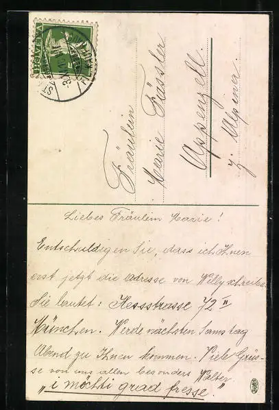 alte Ansichtskarte, gelaufen, Stempelspur, Bugspur oben mittig, guter Zustand