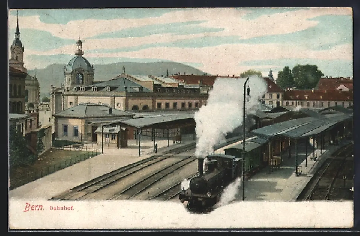 AK Bern, Eisenbahnzug verlässt den Bahnhof
