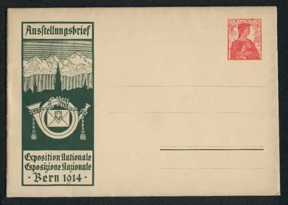 AK Bern, Exposition Nationale 1914, Ausstellungsbrief, Ganzsache