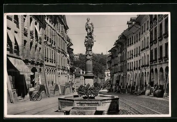 AK Bern, Gerechtigkeitsgasse mit Brunnen