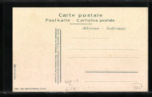 Personenbezogene Daten auf der Rückseite der Karte wurden durch blauen Textmarker unkenntlich gemacht. Die blauen Stellen sind auf die Vorderseite durchgeweicht und wirken sich negativ auf das Postkartenfoto aus
