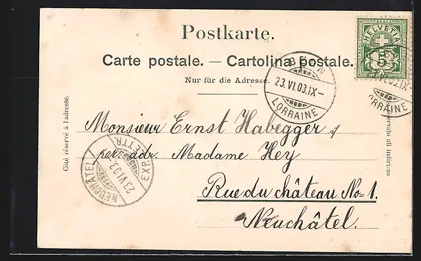 alte Ansichtskarte, gelaufen 1903, guter Zustand