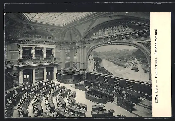 AK Bern, Innenansicht des Bundeshauses, Nationalratssaal