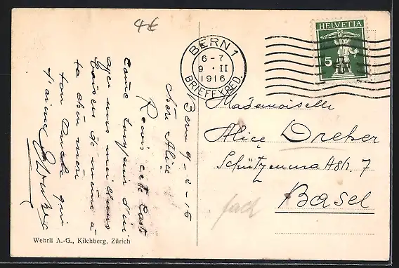 alte Ansichtskarte, gelaufen 1916, Stempelspur, guter Zustand