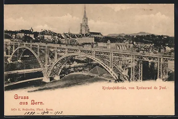 AK Bern, Kirchenfeldbrücke gesehen vom Restaurant du Pont