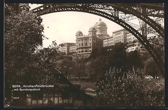 AK Bern, Kirchenfeldbrücke mit Bundespalast