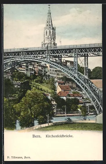 AK Bern, Kirchenfeldbrücke mit Kirche