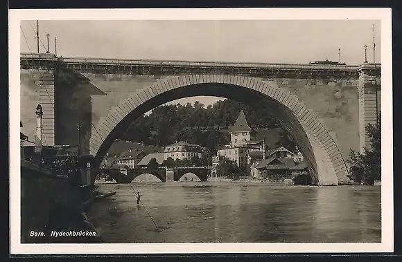 AK Bern, Nydeckbrücken mit Blick zur Ofenfabrik