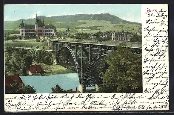 AK Bern, Ortsansicht mit Brücke
