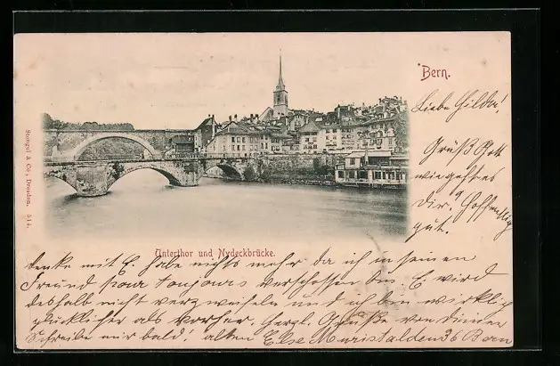 AK Bern, Ortspartie mit Unterthor und Nydeckbrücke
