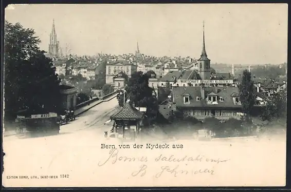 AK Bern, Ortspartie von der Nydeck aus gesehen, Strassenbahn