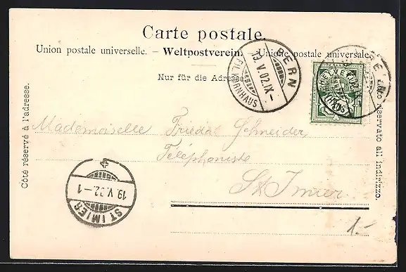 alte Ansichtskarte, gelaufen 1902, Abriebspur oben li., guter Zustand
