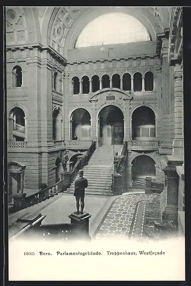 AK Bern, Parlamentsgebäude, Treppenhaus, Westfacade