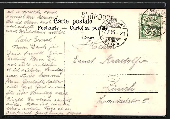 alte Ansichtskarte, gelaufen 1906, guter Zustand
