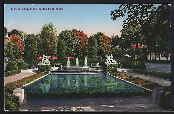 AK Bern, Röseligarten-Promenade mit Fontänen