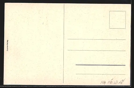 Personenbezogene Daten auf der Rückseite der Karte wurden durch blauen Textmarker unkenntlich gemacht. Die blauen Stellen sind auf die Vorderseite durchgeweicht und wirken sich negativ auf das Postkartenfoto aus