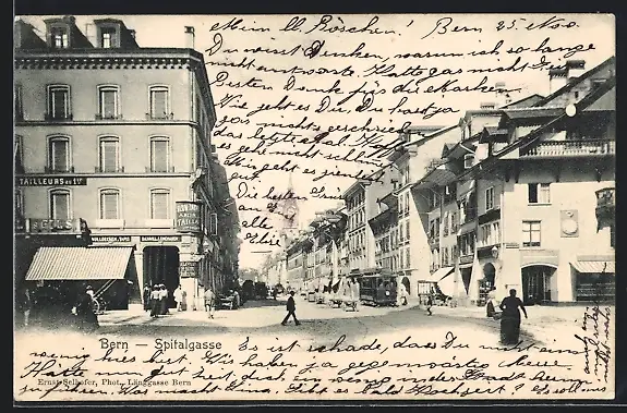 AK Bern, Strassenbahn in der Spitalgasse