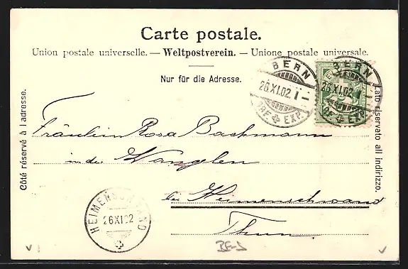 alte Ansichtskarte, gelaufen 1902, guter Zustand