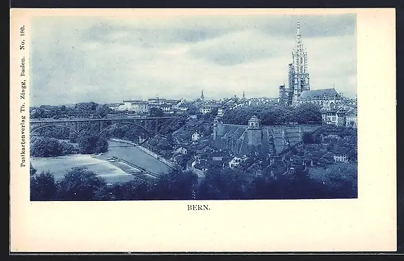 AK Bern, Teilansicht mit Viadukt und Kirche