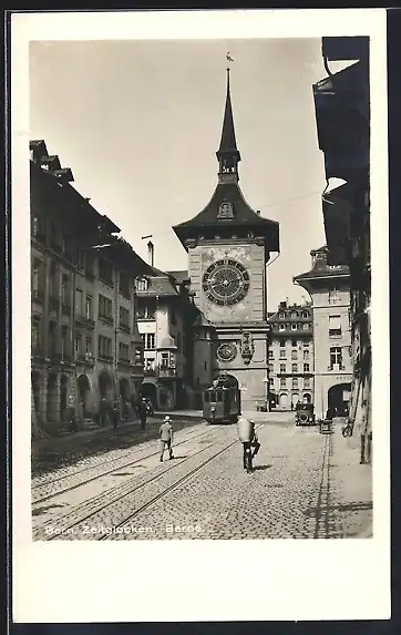 AK Bern, Zeitglockenturm mit Strassenbahn
