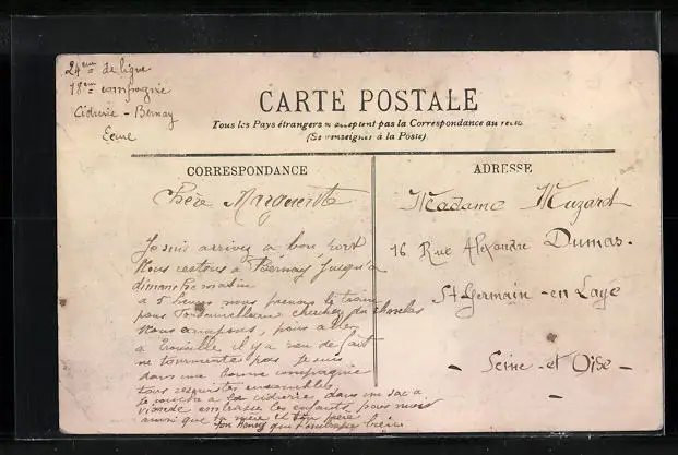 Personenbezogene Daten auf der Rückseite der Karte wurden durch blauen Textmarker unkenntlich gemacht. Die blauen Stellen sind auf die Vorderseite durchgeweicht und wirken sich negativ auf das Postkartenfoto aus