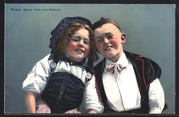AK Berner Bueb und Meitschi in Trachtenkleidung