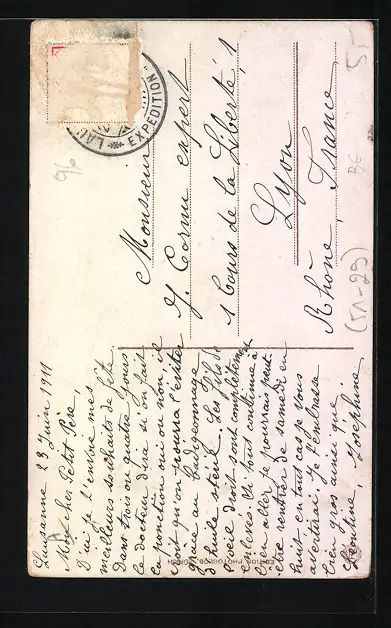 gelaufen 1911, Briefmarke entfernt, rückseitig Oberflächenschaden, guter Zustand