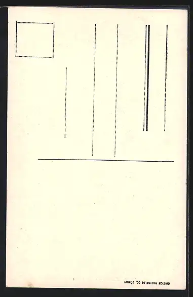 Personenbezogene Daten auf der Rückseite der Karte wurden durch blauen Textmarker unkenntlich gemacht. Die blauen Stellen sind auf die Vorderseite durchgeweicht und wirken sich negativ auf das Postkartenfoto aus