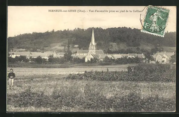 AK Berneuil-sur-Aisne, Vue d'ensemble prise au pied de la Colline
