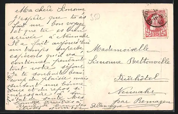 alte Ansichtskarte, gelaufen 1910, guter Zustand