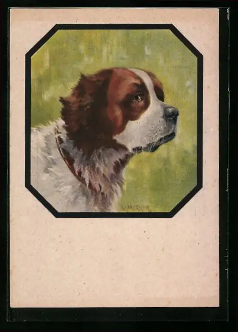 AK Bernhardiner im Passepartout-Rahmen