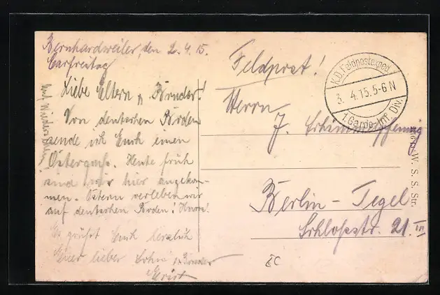 alte Ansichtskarte, gelaufen 1915, Eckknicke unten, guter Zustand